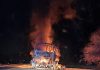 Chocan dos camionetas y un tráiler, el fuego las consume